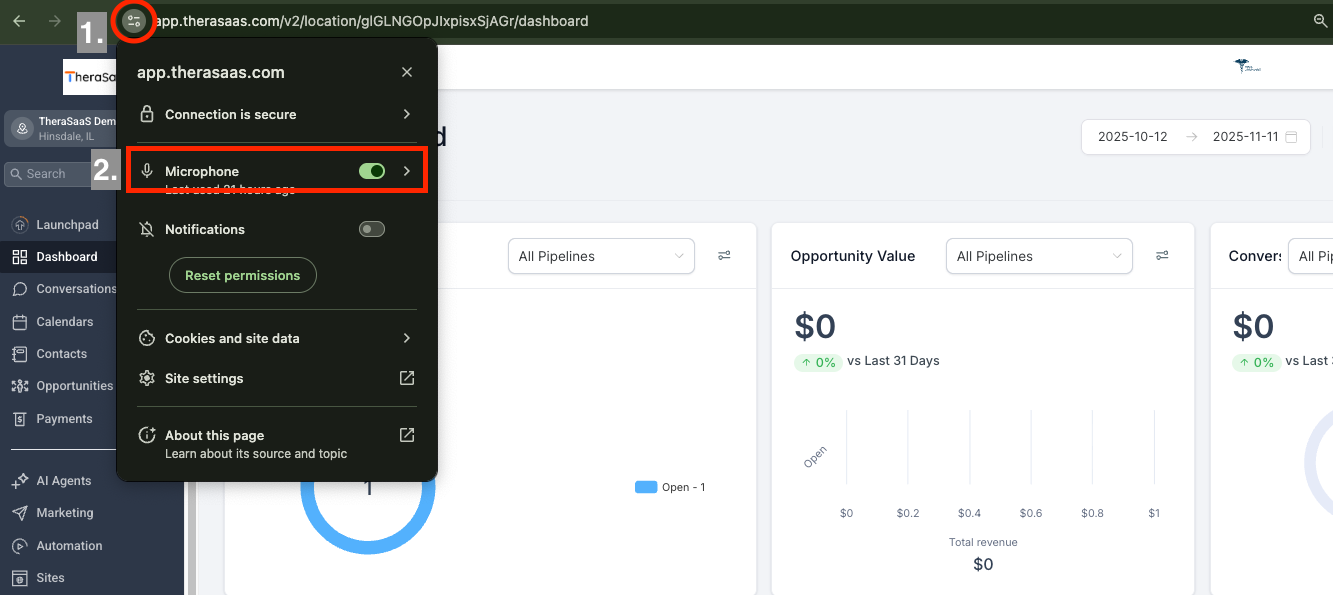 This guide covers two key areas: updating your device microphone settings for clear in-browser calls, and configuring your TheraSaaS phone numbers for optimal call routing, lead handling, and automation. For best results, use Google Chrome as your browser.